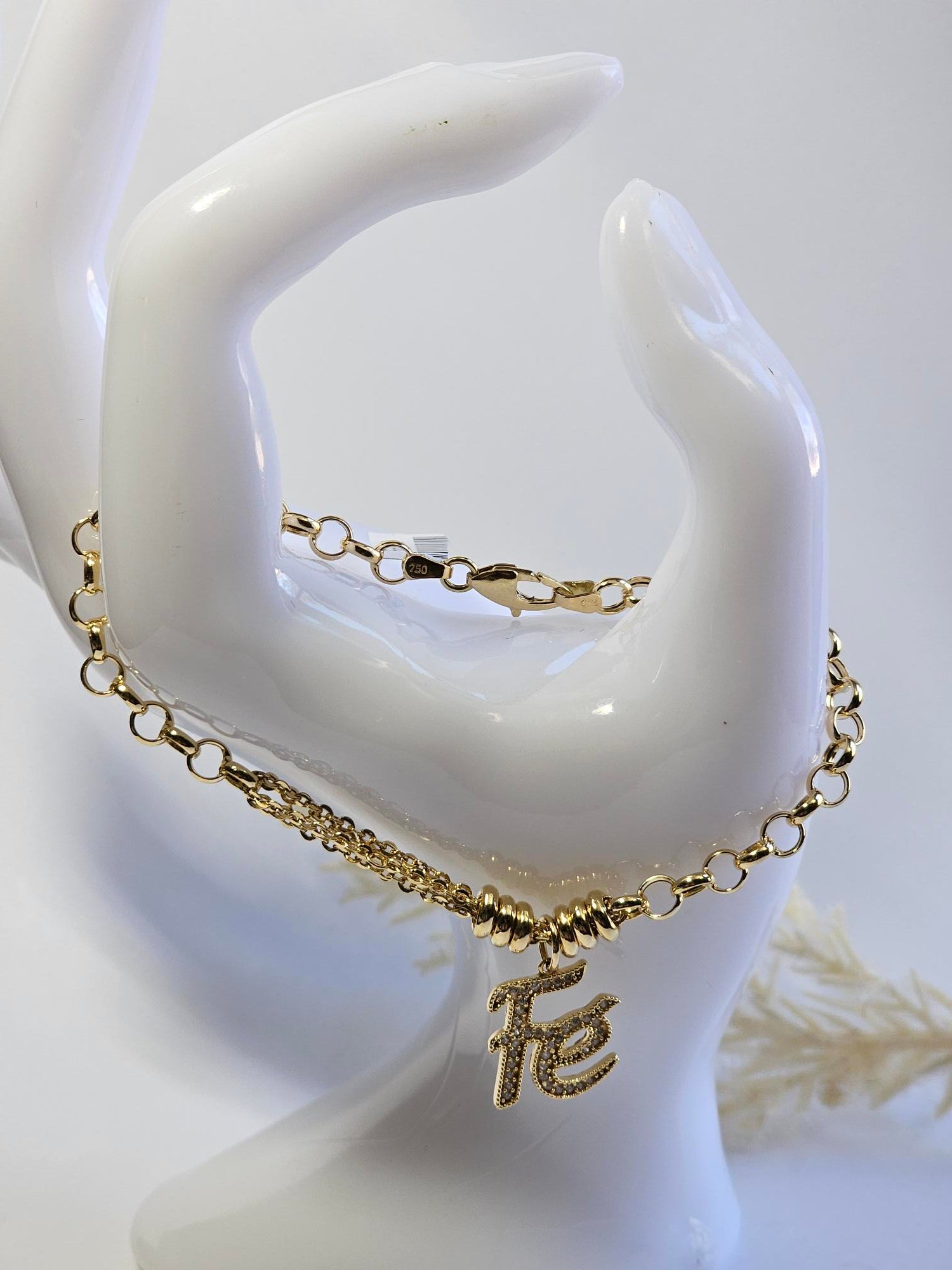 Experience the power of faith with the Brl Faith Religious bracelet. Made with 18k gold and sparkling zirconia, this 19-inch bracelet is a symbol of strength and belief. Let it inspire you to stay grounded and confident in your journey. A must-have for any spiritual soul.