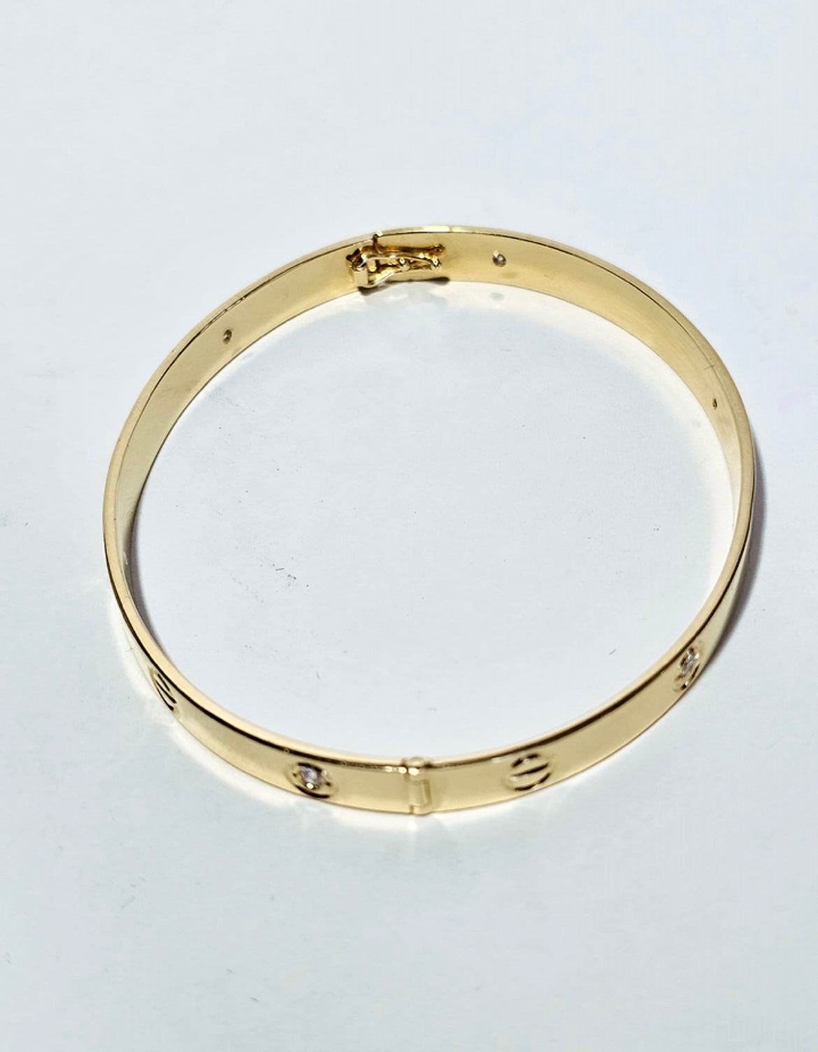 This exquisite bracelet boasts a generous weight of 20.4 grams of pure gold and is adorned with six 10 point diamonds, making it a truly luxurious piece.