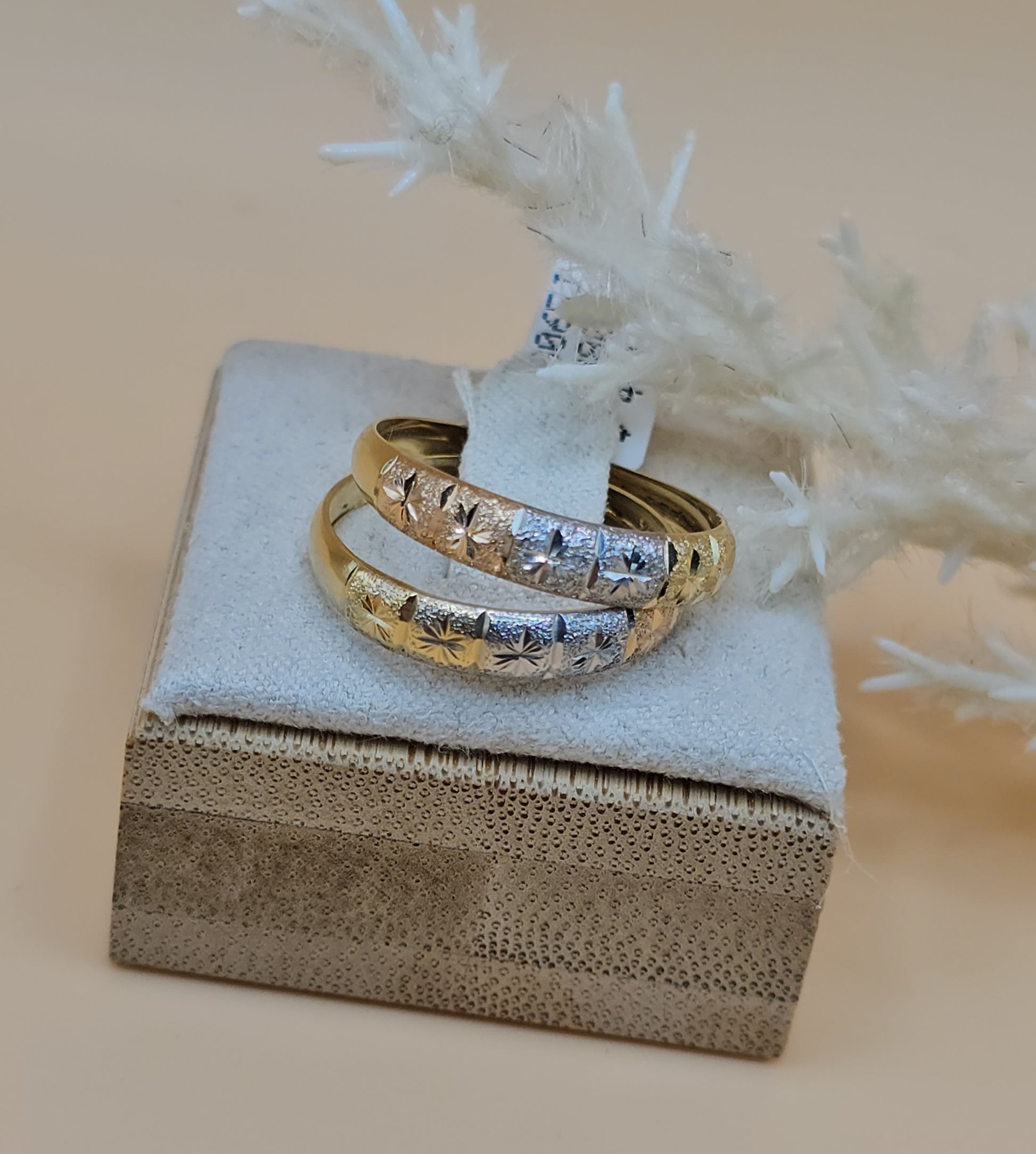 Complete your wedding look with our beautiful Double Rings set! This trio of rings features stunning colors and pairs perfectly with any wedding band. Elevate your style and make a statement on your special day. You won't regret adding these unique and versatile rings to your collection.