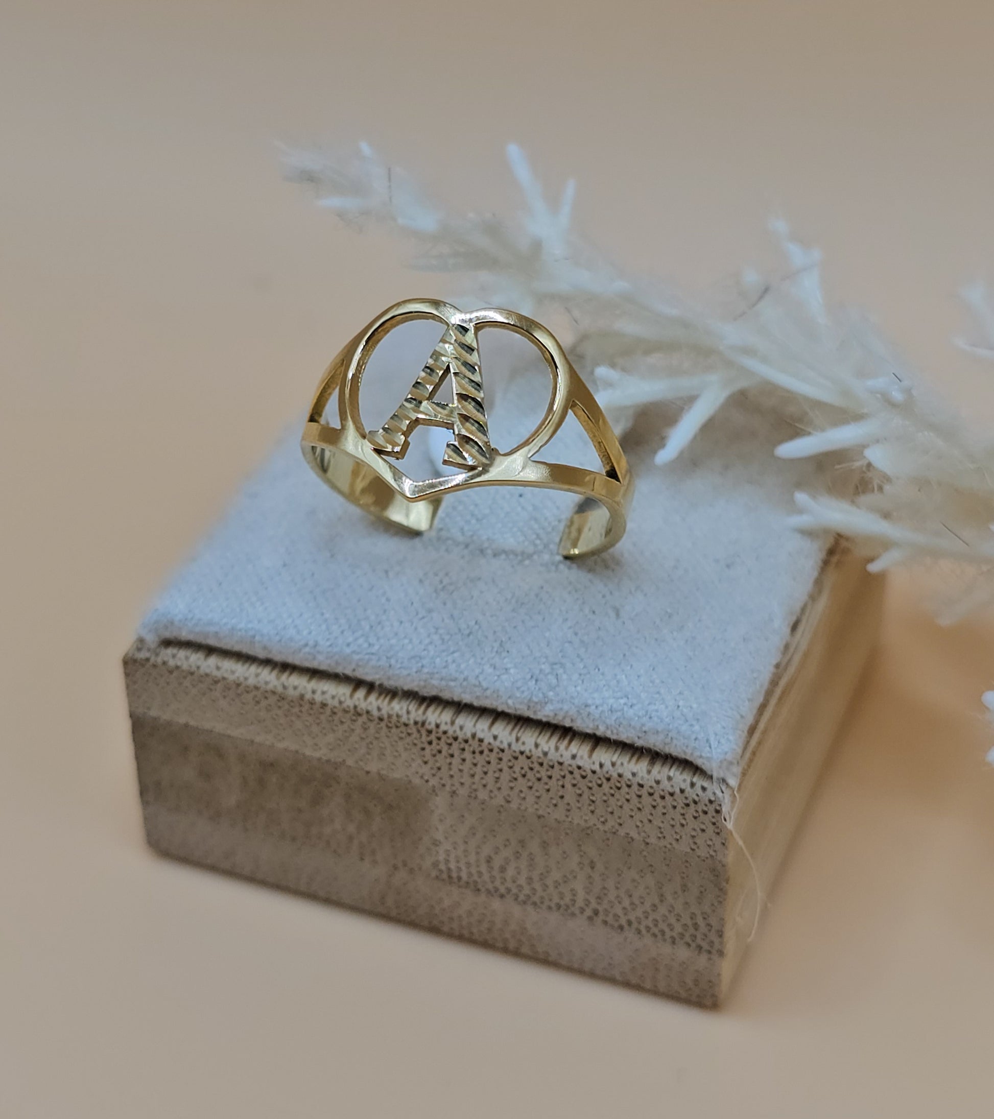 Elevate your style with our Inicial A ring. This delicate ring features a personalized initial, adding a personal touch to any outfit. Made with high-quality materials, it's a timeless piece that will make you stand out. Express yourself with this unique and fashionable accessory.