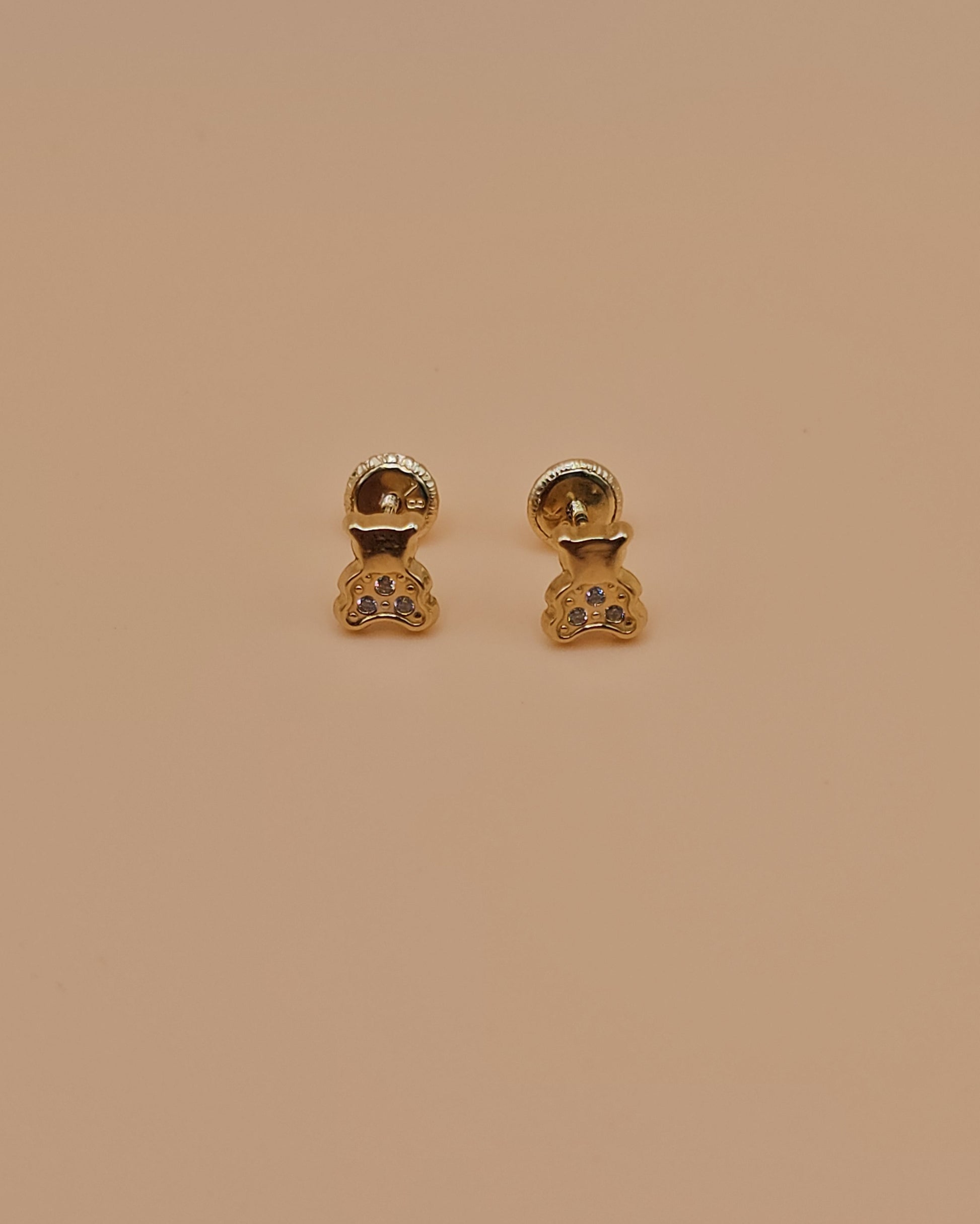 These adorable Kids Bear Earrings feature a sparkling zirconia stone for a touch of whimsy and charm. Perfect for any occasion, these cute bear earrings are sure to please any child with its playful design. Give the gift of wonder and joy with these delightful earrings.
