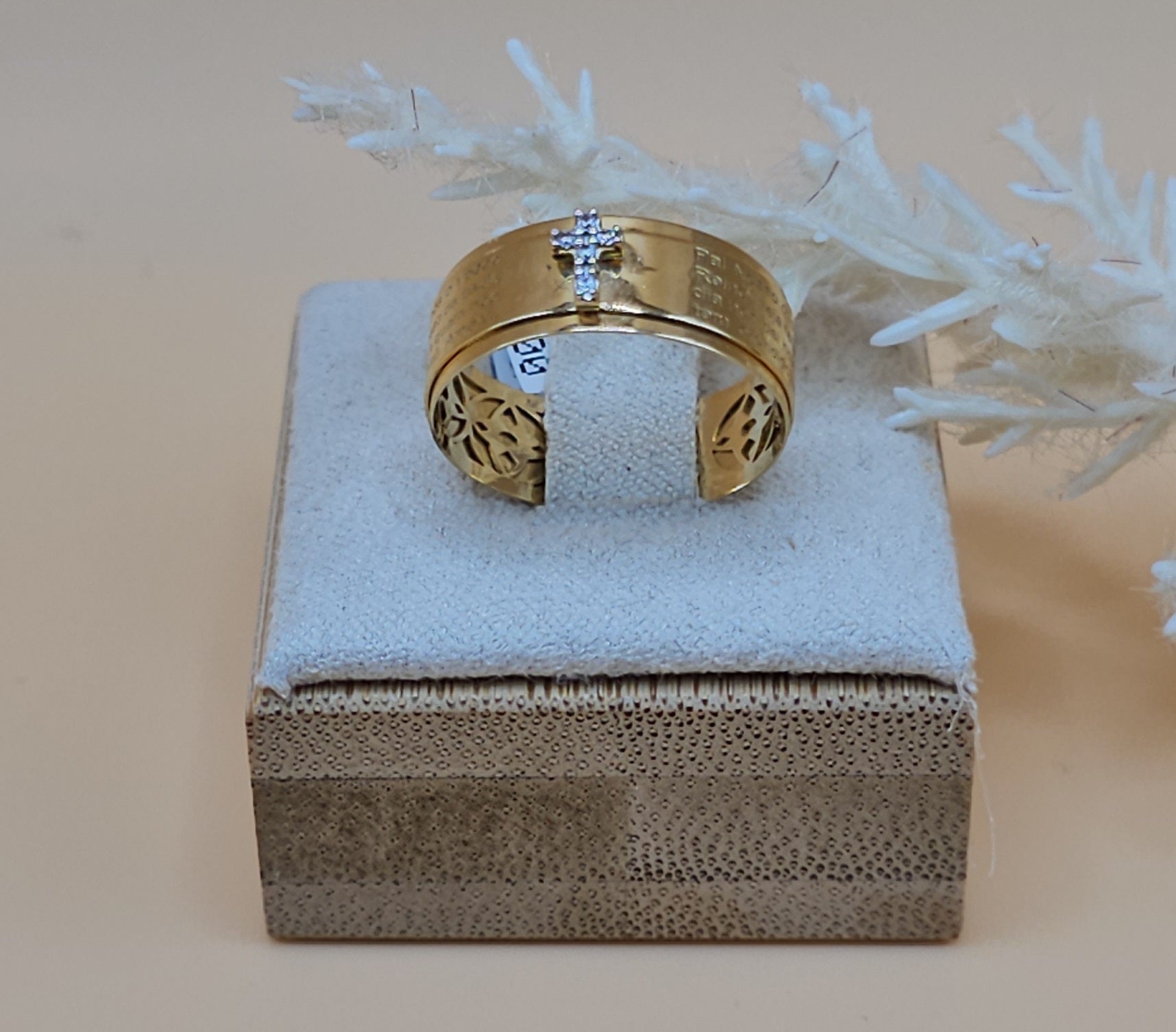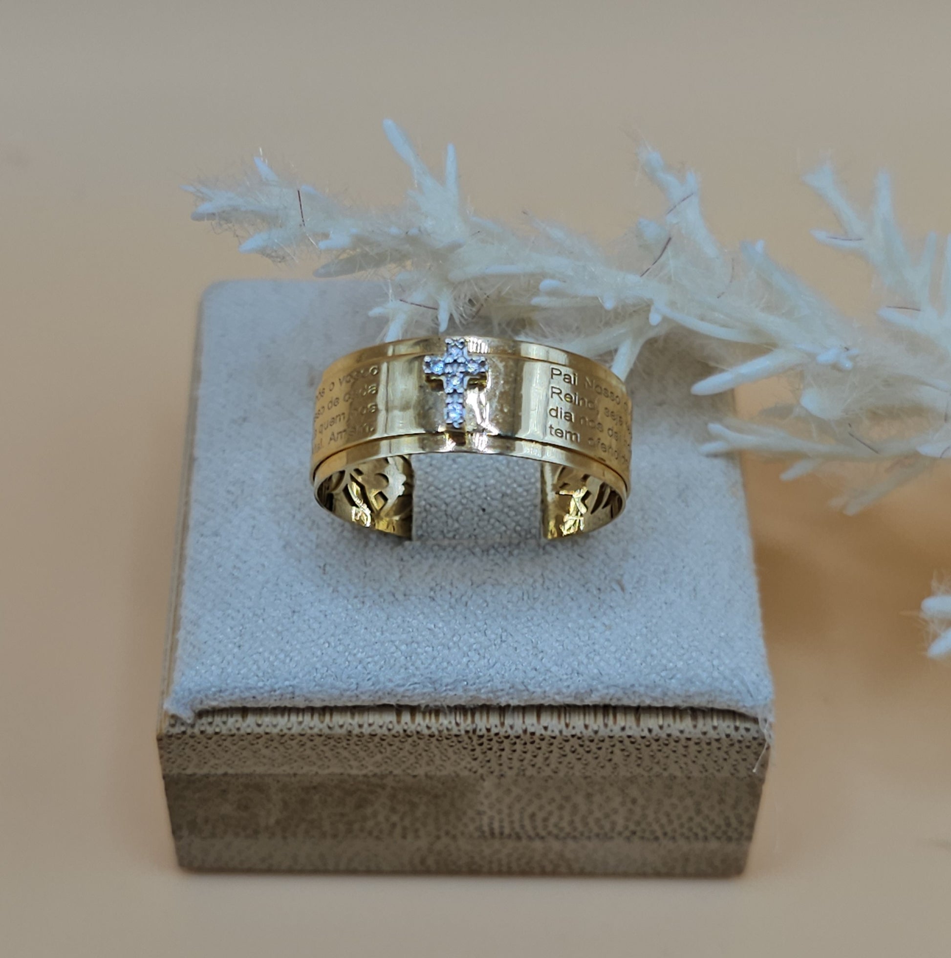 Experience the power of faith with our Prayer Ring. This stunning ring features the beloved father prayer and a beautiful cz cross detail. Keep your prayers close at hand and let this ring inspire a sense of peace and strength in your everyday life.