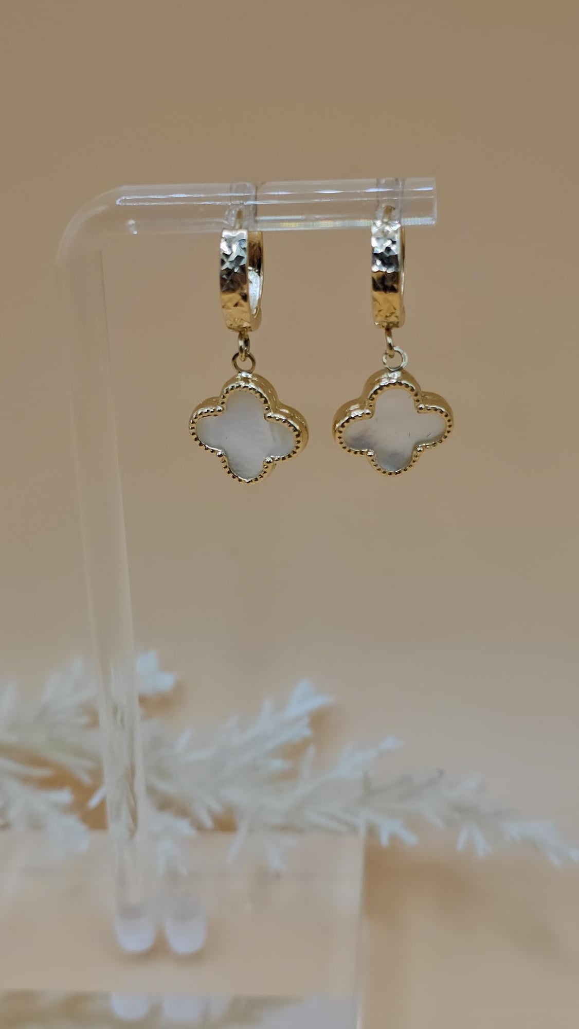 Elevate your style with our Vc brand mother of pearl hoop earrings. Each hoop is adorned with natural and lustrous mother of pearl, adding an elegant and luxurious touch to your look. Make a statement with these sophisticated and exclusive earrings.